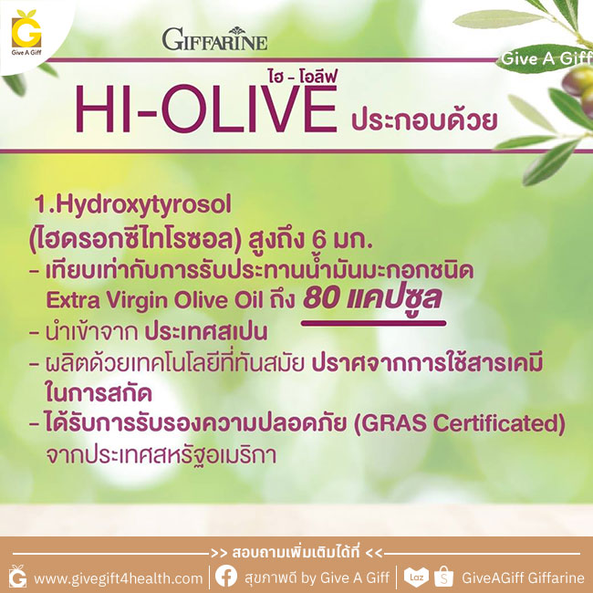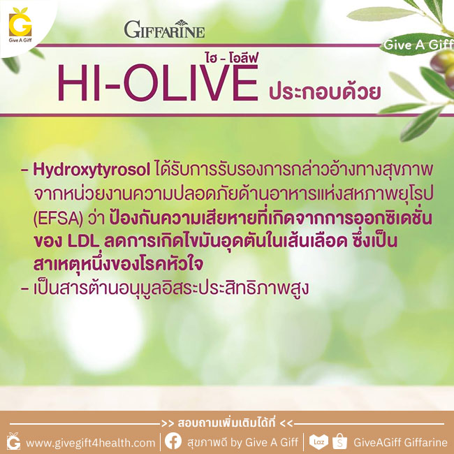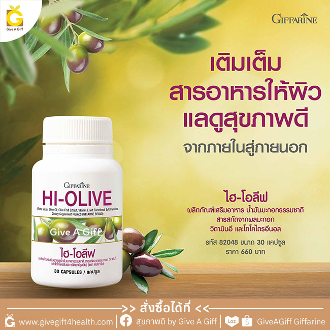 กิฟฟารีน ไฮ-โอลีฟ จึงเป็นตัวช่วยที่ตอบโจทย์สำหรับผู้ที่ต้องการดูแลสุขภาพผิวพรรณให้ดูอ่อนวัย กระจ่างใส และดูแลหลอดเลือดและหัวใจให้แข็งแรงได้เป็นอย่างดี