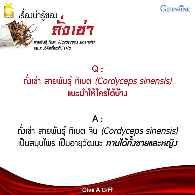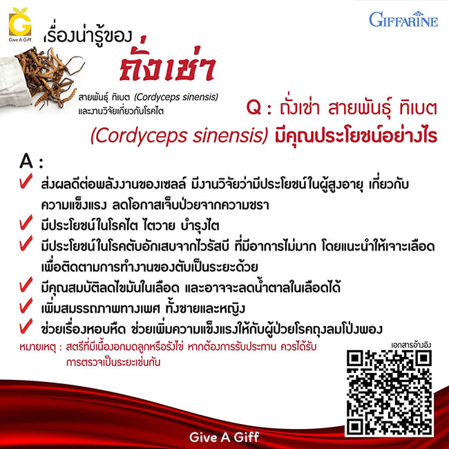 กิฟฟารีน ถั่งเช่า (Giffarine Chong Cao) ![]() ![]() ![]() ![]() ![]() ![]() |