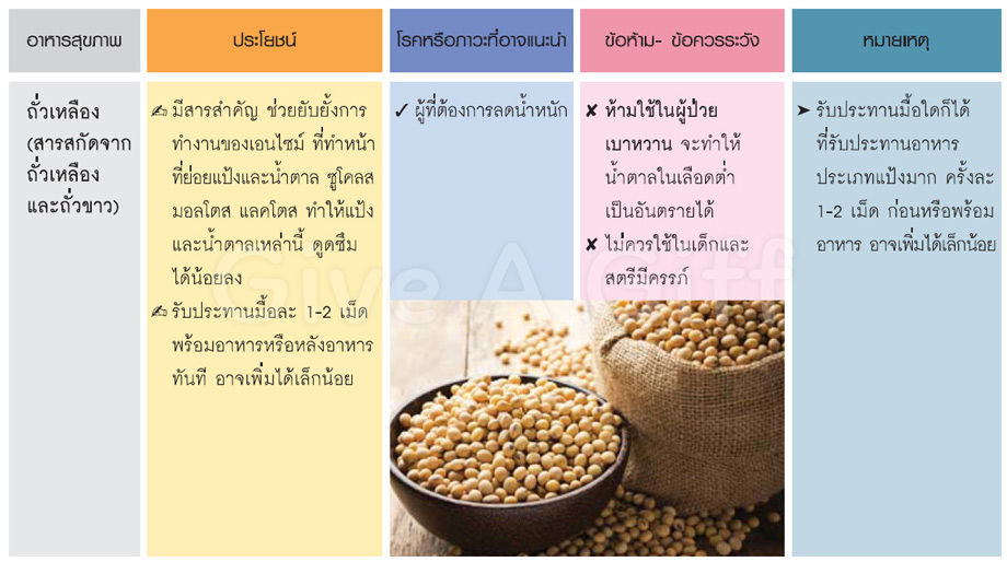 สารสกัดจากถั่วเหลือง ช่วยยับยั้งการทำงานของเอนไซม์ แอลฟา-กลูโคซิเดส (Alpha-glucosidase) ที่ทำหน้าที่ย่อยน้ำตาลโมเลกุลคู่ให้เป็นโมเลกุลเดี่ยว ทำให้ร่างกายดูดซึมน้ำตาลได้น้อยลง